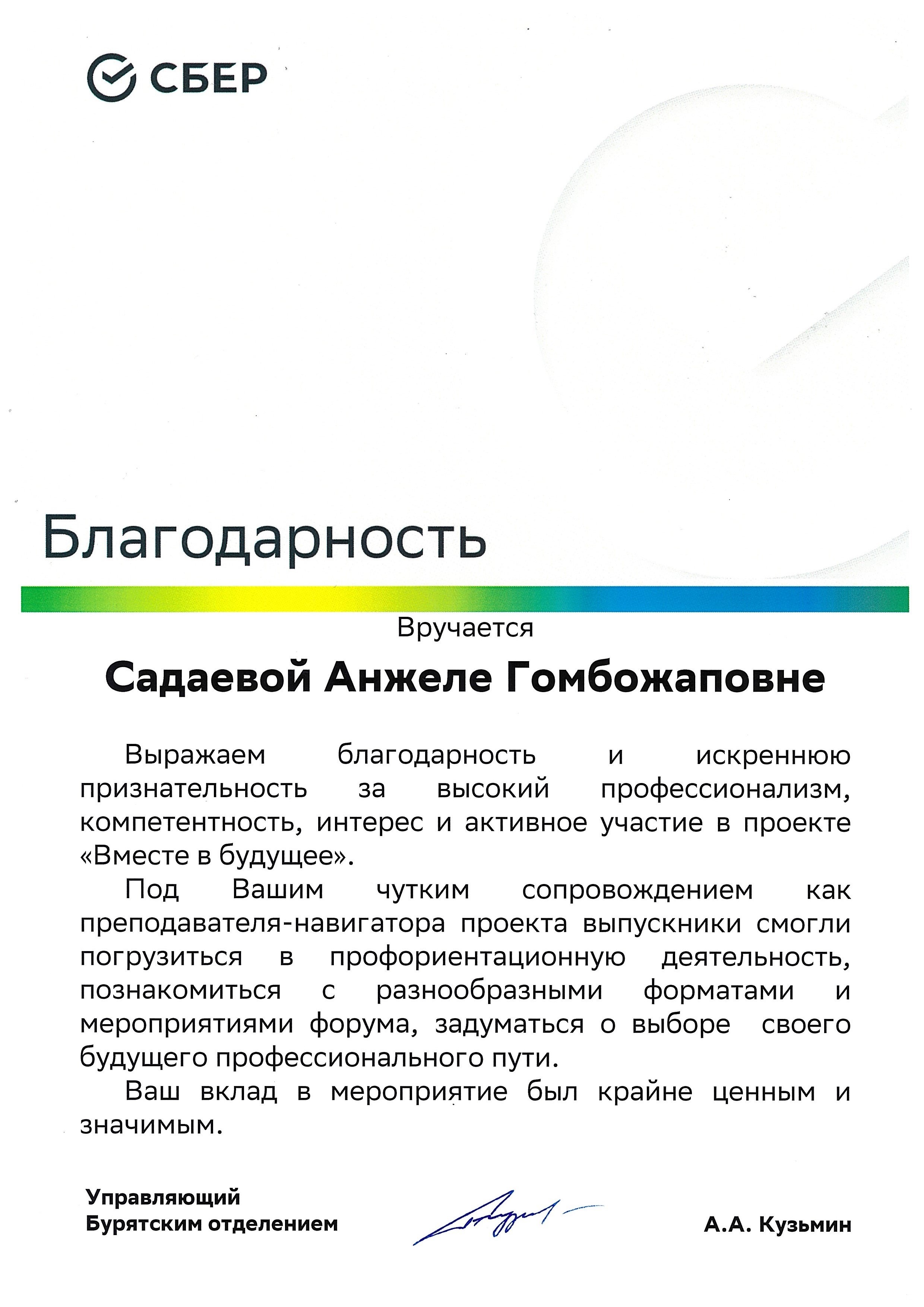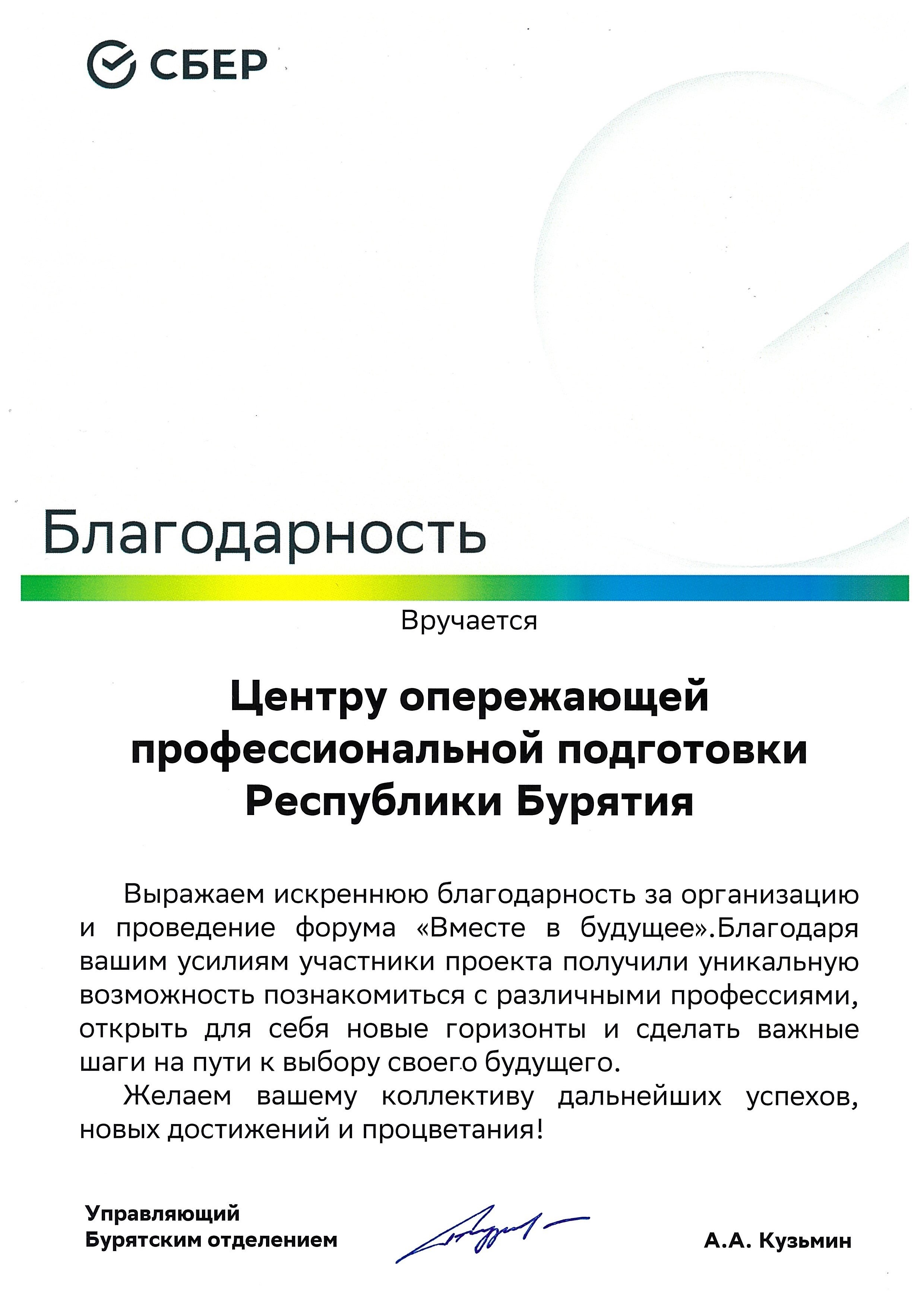 Благодарственные письма и награды